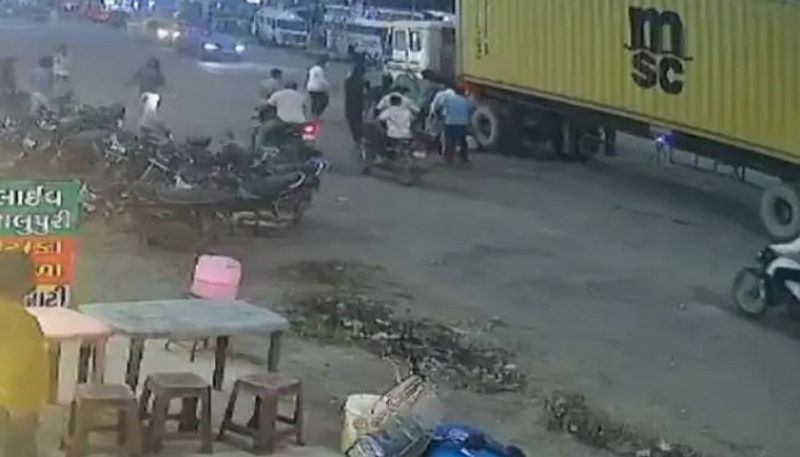 સુરતમાં રોડ પરના ખાડાને લીધે બાઈક સવાર ત્રણ યુવાનો પટકાતા કન્ટેનરે અડફેટે લીધા
