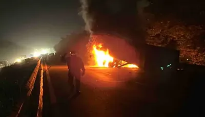ઈકબાલગઢ નજીક નેશનલ હાઈવે પર ટ્રેલરમાં આગ લાગતા ખાક