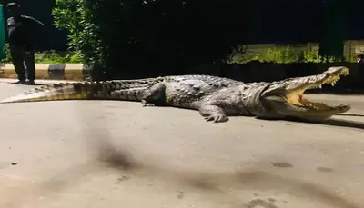 - મગર પર પાંચ યુવક બેઠા ત્યારે માંડ-માંડ કાબૂમાં આવ્યો,