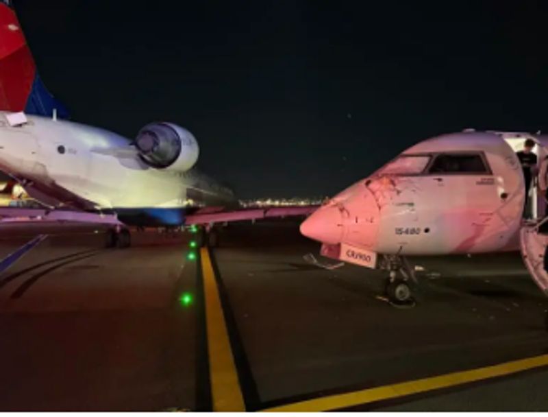 અમેરિકા સ્થિત ન્યૂયોર્કના લા ગાર્ડિયા એરપોર્ટ પર બે વિમાનો ટેક્સીવે પર એકબીજા સાથે અથડાયા હતા. બંને વિમાનો ડેલ્ટા એરલાઇન્સની સહાયક કંપની એન્ડેવર એર દ્વારા સંચાલિત હતા. આ ઘટનામાં એક મુસાફર ઇજાગ્રસ્ત થયો છે. બનાવને પગલે બંને વિમાનોમાં સવાર તમામ મુસાફરોને સુરક્ષિત રીતે નીચે ઉતારી શટલ બસ દ્વારા ટર્મિનલ સુધી લઈ જવામાં આવ્યા. ન્યૂયોર્ક ટાઈમ્સે એરપોર્ટ પ્રશાસનના અધિકારીઓના હવાલાથી માહિતી આપી કે એક વિમાન લેન્ડિંગ બાદ ગેટ તરફ જઈ રહ્યું હતું ત્યારે રાત્રે 9:58 વાગ્યે બીજું વિમાન, જે ટેકઓફ માટે તૈયાર થઈ રહ્યું હતું, તે સમયે આ દૂર્ઘટના સર્જાઈ હતી.