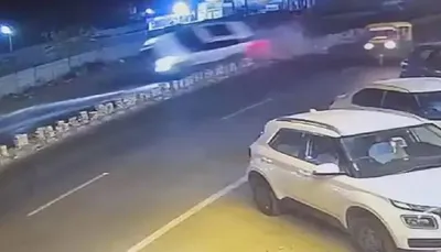 - પૂરફાટ ઝડપે કાર ડિવાઈડર કૂદીને સામેના રોડ પર એક્ટિવા સાથે અથડાઈ,