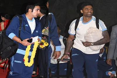 અમદાવાદઃ સૂર્યકુમાર યાદવની કેપ્ટનશીપ હેઠળ ટીમ ઈન્ડિયા રાજકોટમાં ઈંગ્લેન્ડ સામે ત્રીજી T20 મેચ રમશે. રવિવારે મોડી રાત્રે જ્યારે ટીમ પહોંચી ત્યારે ચાહકોએ તેમનું ઉષ્માભર્યું સ્વાગત કર્યું હતું. શનિવારે ચેન્નાઈમાં બીજી મેચ બે વિકેટથી જીતીને ભારત પાંચ મેચની ટી20 શ્રેણીમાં 2-0થી આગળ છે. 166 રનના લક્ષ્યનો પીછો કરતા તિલક વર્માના અણનમ 78 રનની મદદથી ટીમે એમએ ચિદમ્બરમ સ્ટેડિયમમાં રમાયેલી રોમાંચક મેચમાં ચાર બોલ બાકી રહેતા વિજય મેળવ્યો.
