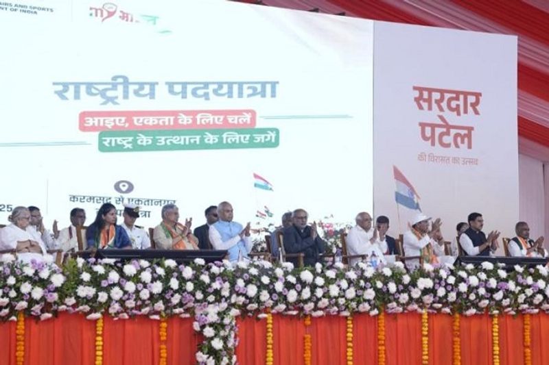 સરદાર પટેલની 150મી જન્મજયંતિની ઉજવણી માટે આયોજિત રાષ્ટ્રીય પદયાત્રા 26 નવેમ્બર, 2025 ના રોજ કરમસદથી શરૂ થઈ હતી અને આજે સ્ટેચ્યુ ઓફ યુનિટી ખાતે સફળતાપૂર્વક સમાપ્ત થઈ. આ પ્રસંગે ગુજરાતના રાજ્યપાલ આચાર્ય દેવવ્રત, મુખ્યમંત્રી ભૂપેન્દ્ર પટેલ અને કેન્દ્રીય મંત્રીઓ મનસુખ માંડવિયા, રક્ષા ખડસે અને રાજીવ રંજન રાય પણ ઉપસ્થિત રહ્યા હતા.