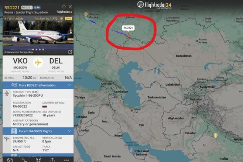 રીઅલ-ટાઇમ એવિએશન ટ્રેકર FlightRadar24 અનુસાર પ્રમુખ પુતિનનું વિમાન થોડા સમય માટે પૃથ્વી પર સૌથી વધુ ટ્રેક કરાયેલી ફ્લાઇટ બની ગયું હતું. પુતિન ગુરુવારે સાંજે નવી દિલ્હી પહોંચ્યા, જ્યાં વડા પ્રધાન નરેન્દ્ર મોદીએ પાલમ એરપોર્ટ પર તેમનું સ્વાગત કર્યું હતું. તે પહેલાં રશિયન નેતાની ફ્લાઇટ ઉપર 20,000 થી વધુ લોકો નજર રાખી રહ્યા હતા.