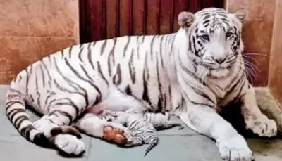 રાજકોટના પ્રદ્યુમન પાર્ક પ્રાણી સંગ્રહાલયમાં સફેદ વાઘણે બે બચ્ચાને આપ્યો જન્મ