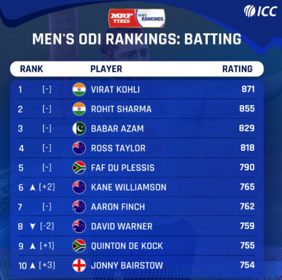 રોહિત શર્માએ ICC ODI રેન્કિંગમાં બેટ્સમેનોમાં પ્રથમ સ્થાન મેળવ્યું
