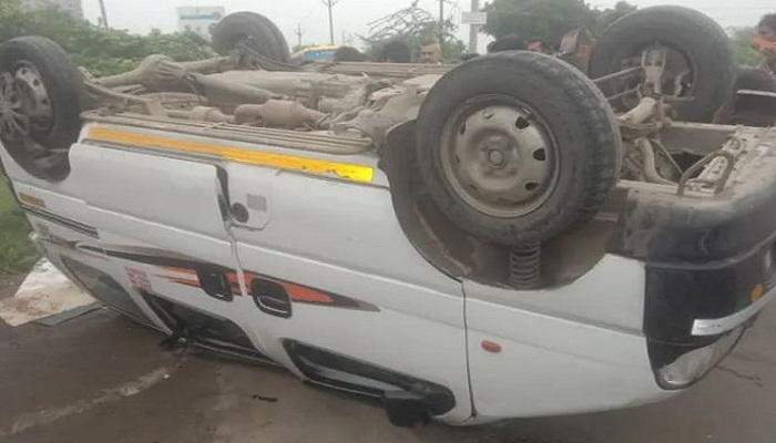 વડોદરાના વાઘોડિયા નજીક SSV 2 સ્કૂલના વિધાર્થીઓની ઈક્કો વેન પલટી ખાતા 14 ઈજા